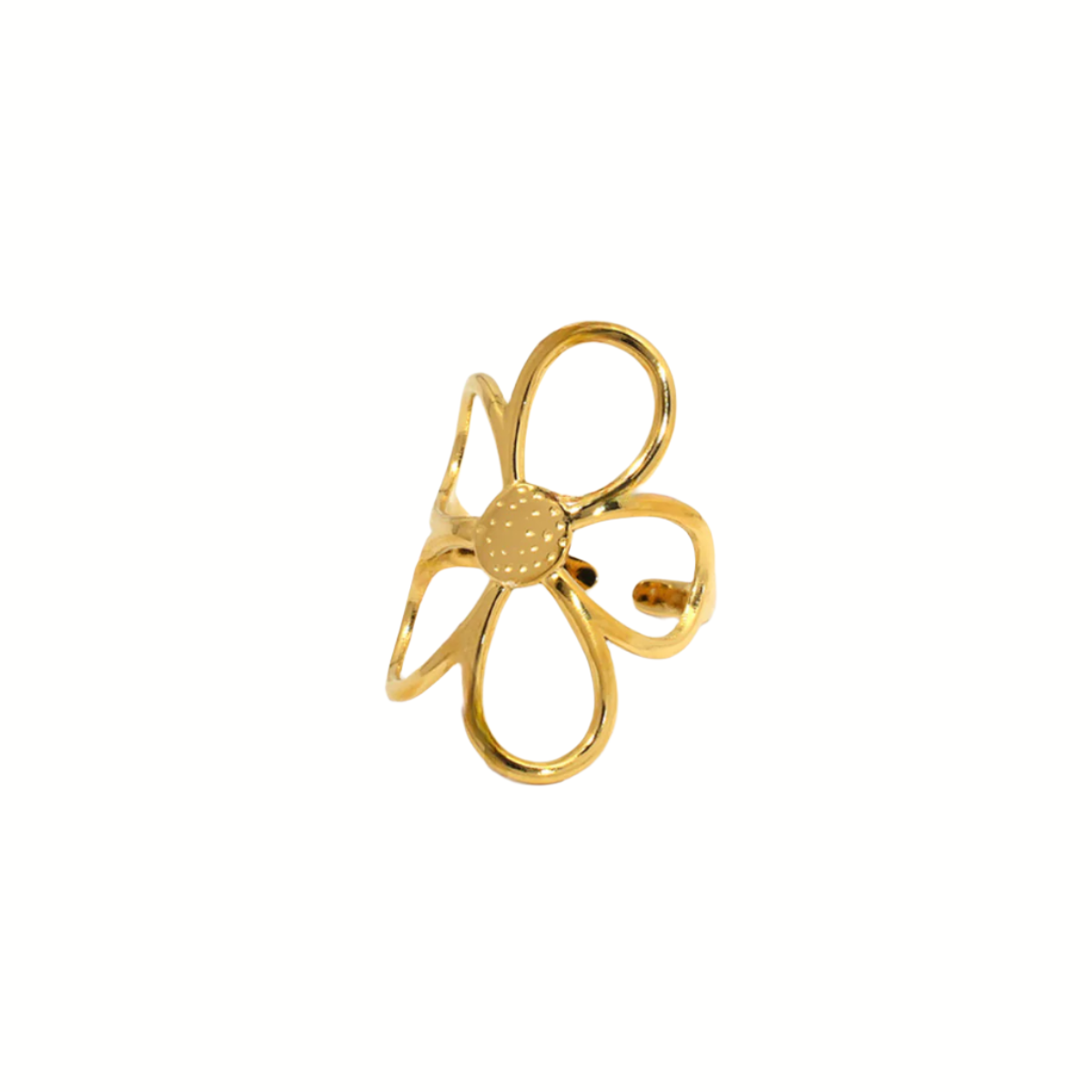 Minimal lines, maximum bloom. Bloomprint is a bold, open-petal flower ring that feels equal parts statement and simplicity. Available in gold or silver, this lightweight adjustable piece brings sculptural flair to your everyday stack—and proves florals can be fierce.