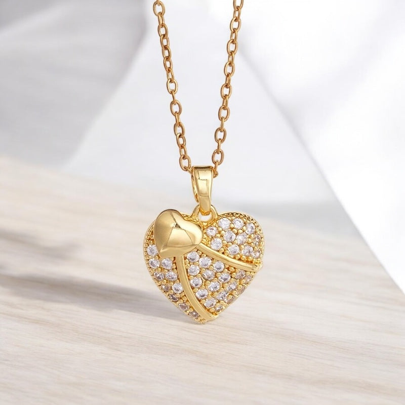 A heart wrapped in gold, like a promise sealed in light. Bound to You features a pavé crystal pendant hugged by a smooth gold band—symbolizing connection, devotion, and something too precious to let go. Available in silver or gold for whatever your heart holds closest.
