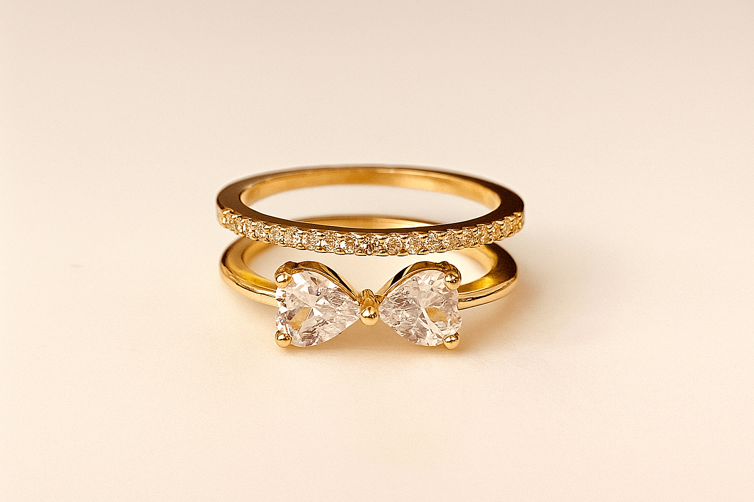 A little elegance tied up just for you. This gold-tone ring features a delicate bow adorned with tiny pavé stones—subtle sparkle with a feminine twist. Whether you're dressing up a casual day or finishing off your evening look, Bowtique is the kind of charm that makes everything feel special.