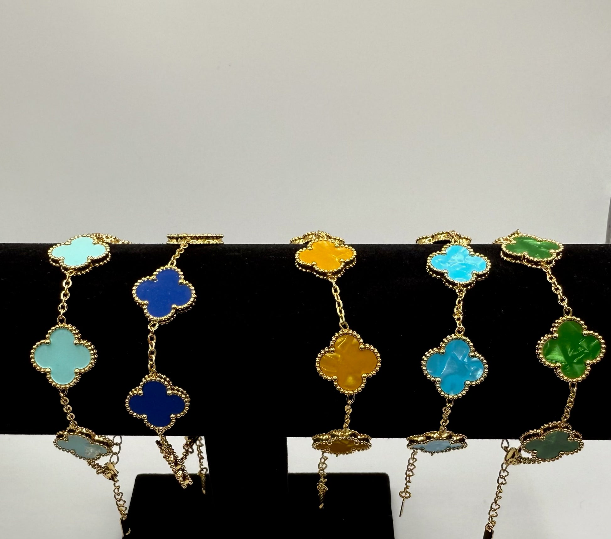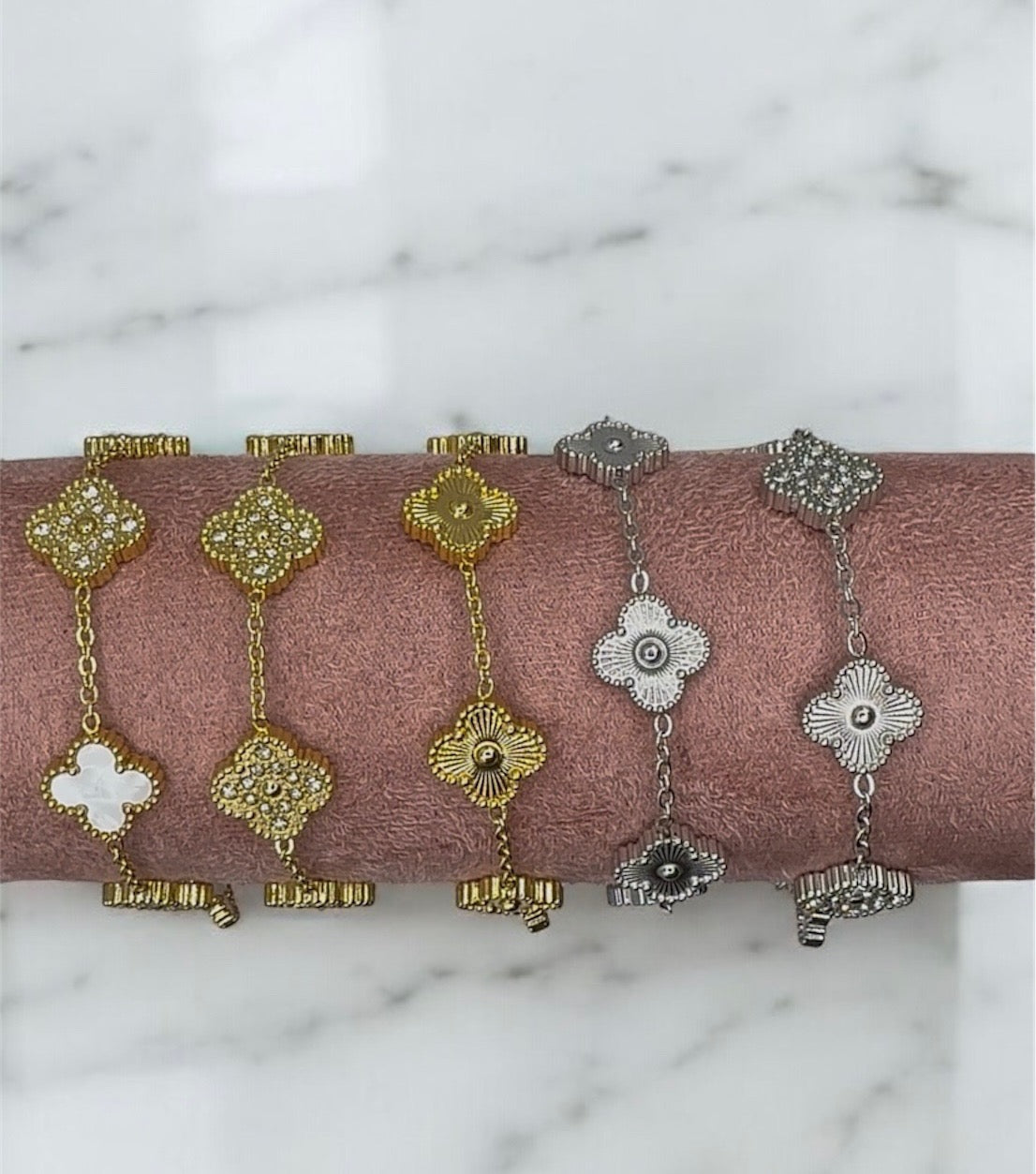 A polished row of clover-shaped charms gives this bracelet its signature style. The Charm Clover bracelet blends simplicity and elegance, making it perfect for both everyday wear and special moments. Wear it alone for a refined touch or layer it with other favorites to create your own unique stack.