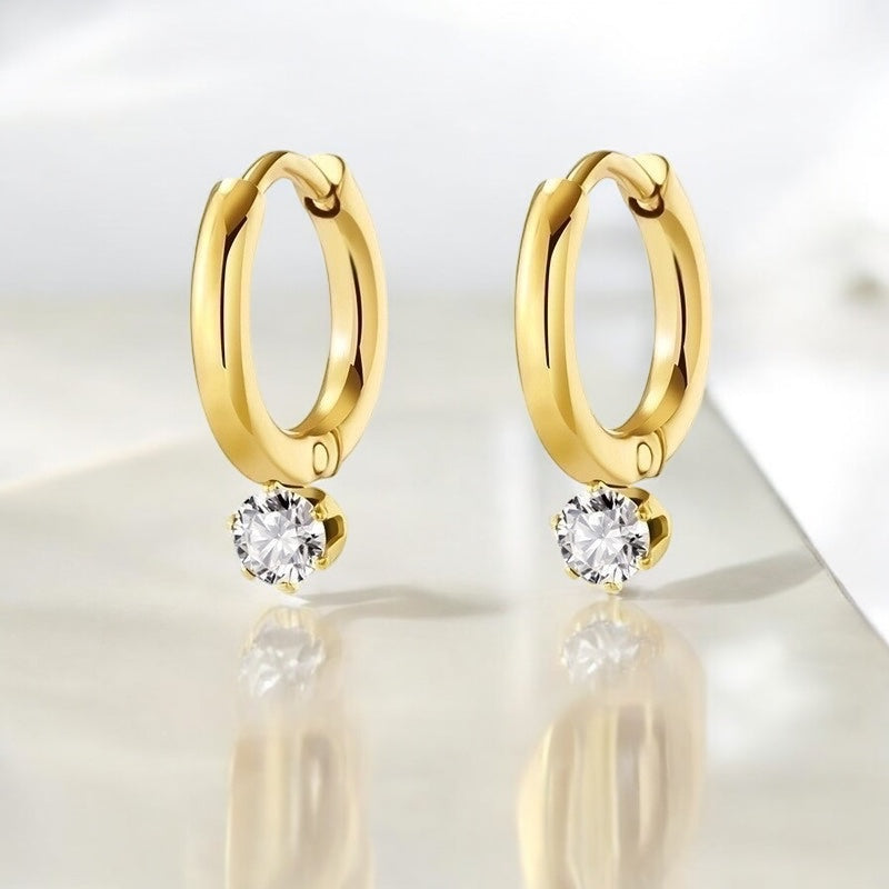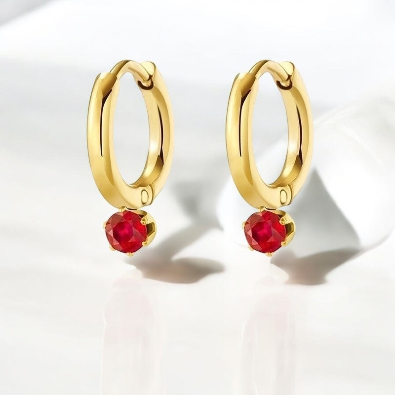 A little sparkle, a little sass. These sleek gold huggie hoops are finished with a brilliant gemstone drop—available in fiery red or classic clear—to add just the right pop to any look. Lightweight, polished, and easy to pair with anything, Gem Pop is your everyday dose of glam.