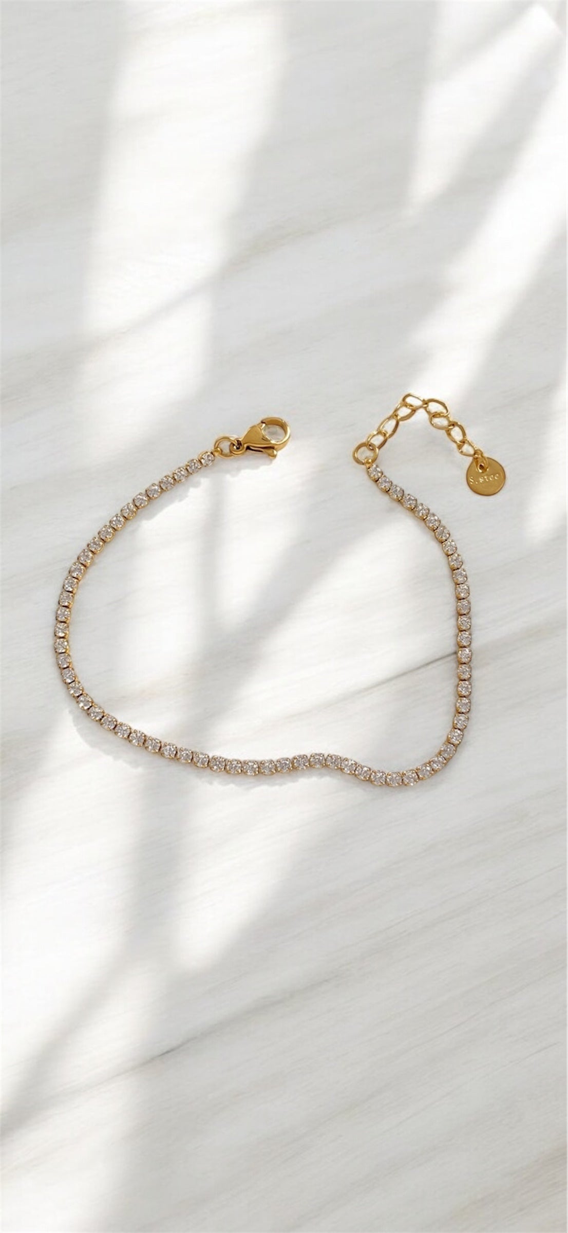 Simple, sleek, and impossible to miss. This dainty gold-plated bracelet is lined with a full row of shimmering stones that catch the light just right. Whether you’re layering or letting it shine on its own, Gleam adds that effortless sparkle your wrist has been waiting for.