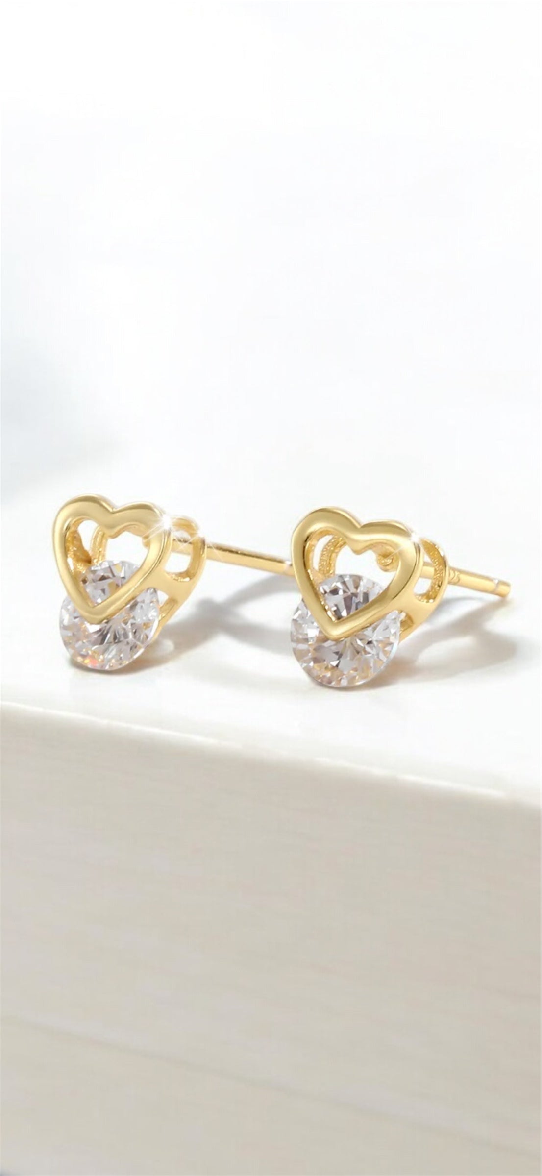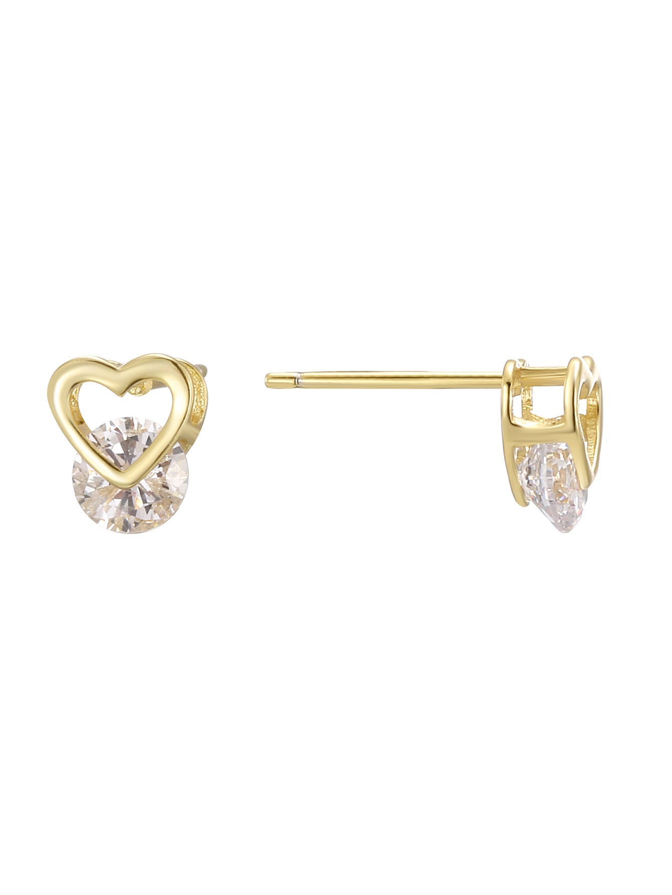 These heart-framed studs capture the sparkle of your favorite hour—when the sun softens and everything glows. Featuring open gold hearts cradling radiant stones, Golden Hour Love is sweet, dainty, and full of light-catching charm. Perfect for everyday romance or layering with bold pieces.