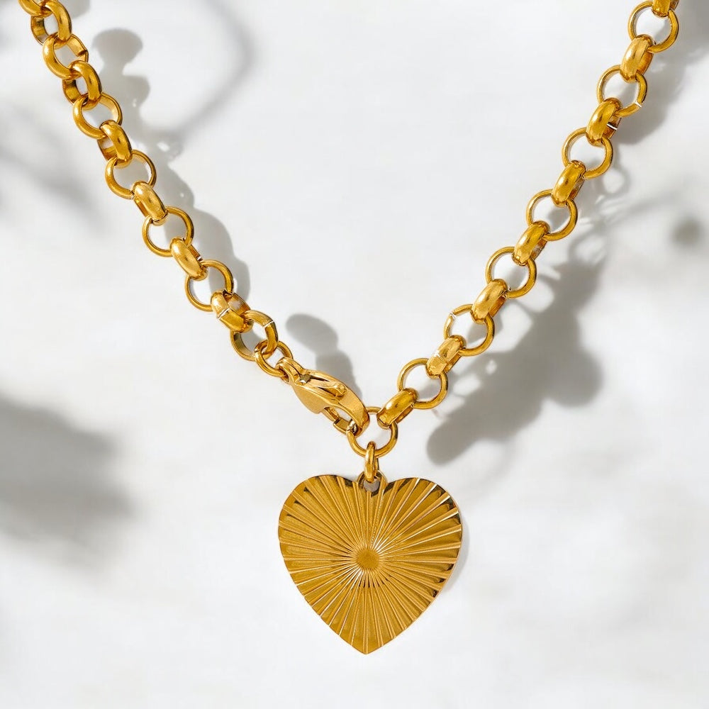 With its thick gold links and etched heart pendant, Hard to Heart brings edge and elegance together in one confident piece. It’s bold but not brash—designed to catch light and attention with every turn. Wear it solo for a statement or layer it up when you’re in your power era.