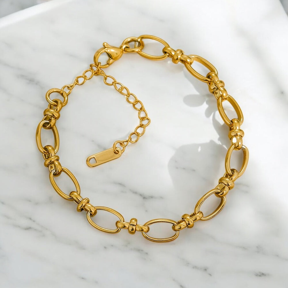 A little bold, a little bougie. Heavy Petal is a statement bracelet made of thick, high-shine links tied together with sleek detail. It’s the perfect balance of softness and strength—made to anchor your stack or shine solo.