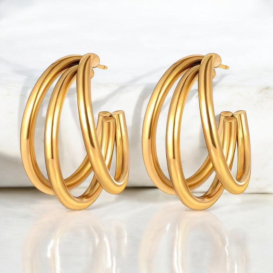 All eyes on you. Main Character hoops bring drama and depth with their triple-layered silhouette and high-gloss shine. Whether you choose gold or silver, these statement earrings were made to steal the spotlight—because background energy just isn’t your thing.