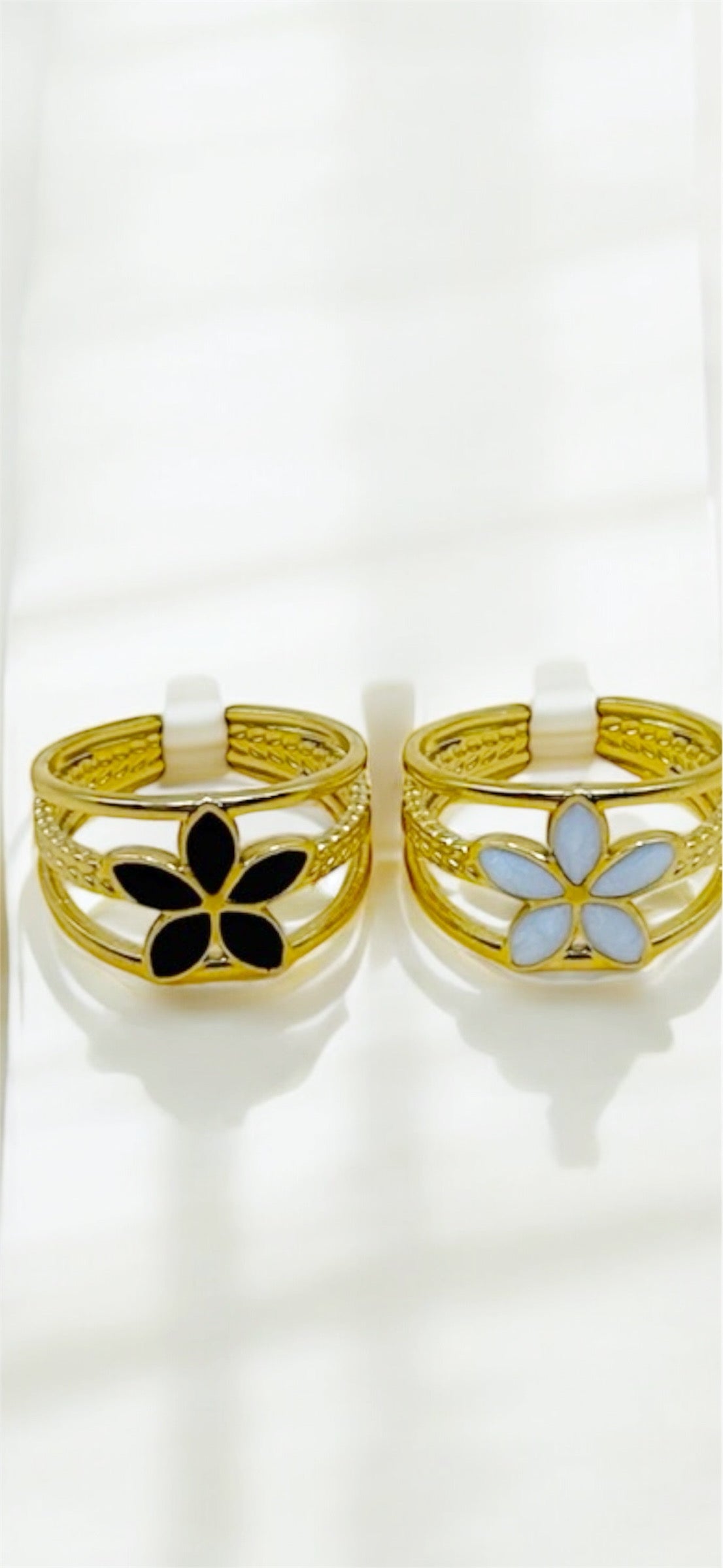 Power Petal is for the days you want your femininity to roar. Bold enamel petals bloom from a sleek, open gold band—offered in both black and white to match your mood. It’s strong, striking, and still beautifully soft at the center.