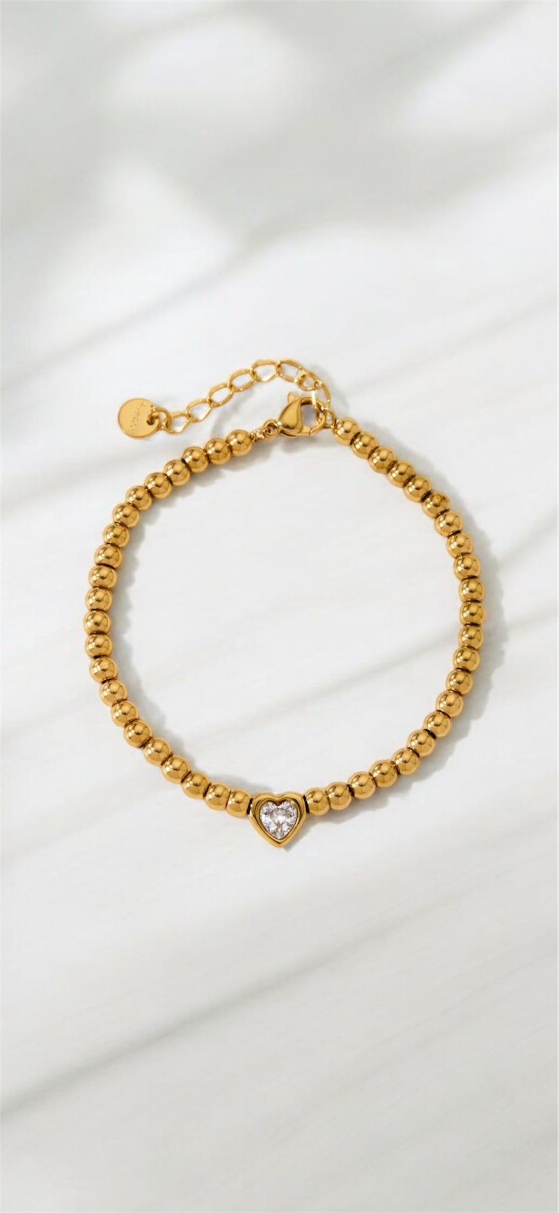Sleek gold beads lead to a single heart-shaped CZ centerpiece, adding a subtle sparkle to your everyday rhythm. Pulse is that perfect blend of minimal and meaningful—effortless, stylish, and full of charm.