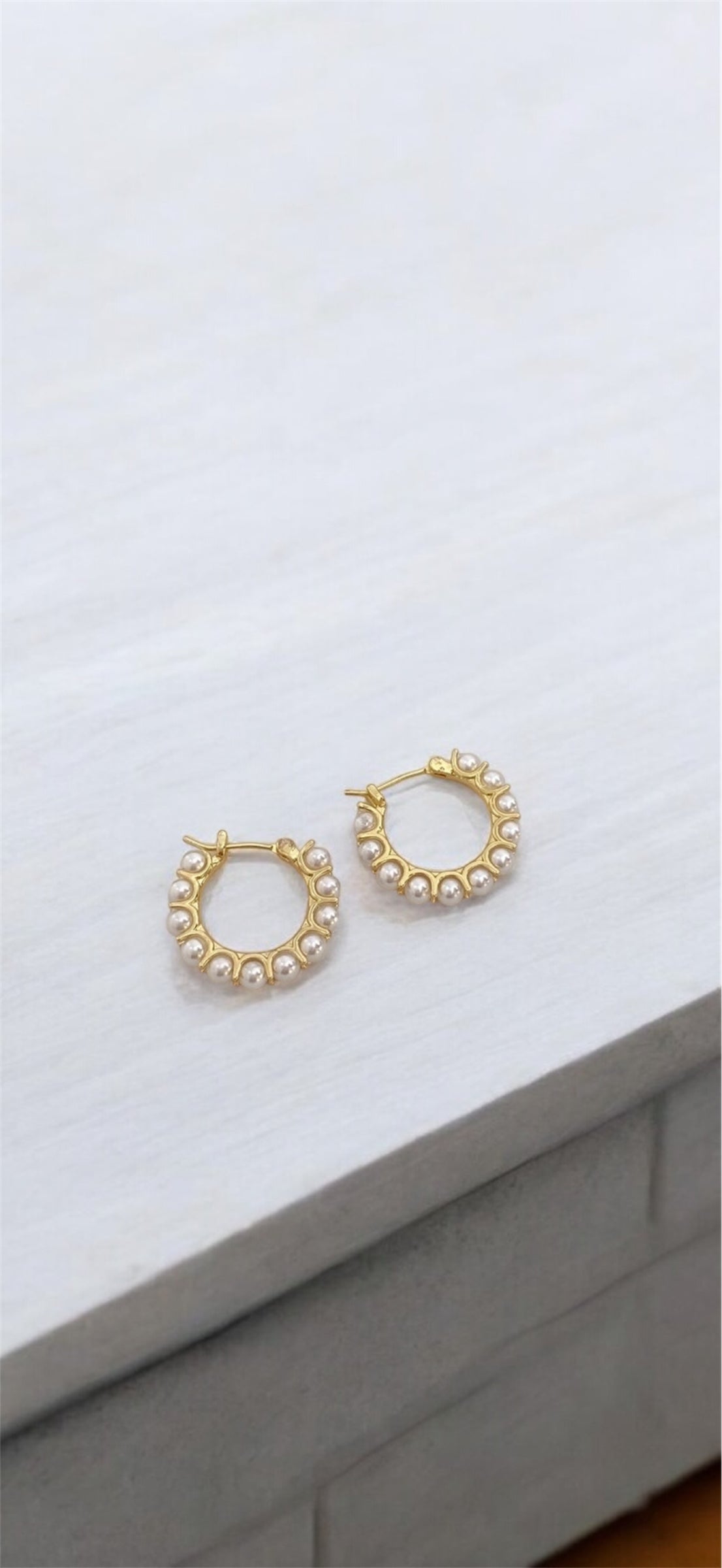 A modern heirloom in the making. Purely Yours hoops are lined with delicate pearls set in polished gold, creating a soft shimmer that hugs the ear just right. They're the kind of piece that feels personal—simple enough for every day, special enough to hold onto.