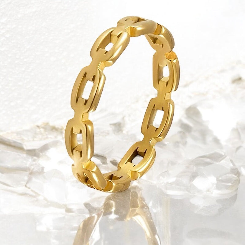 Bold links, timeless shine. Stay Connected is a sleek chain band that adds edge and elegance to your everyday stack. Wear it solo for subtle shine or layer it to link up your whole look.