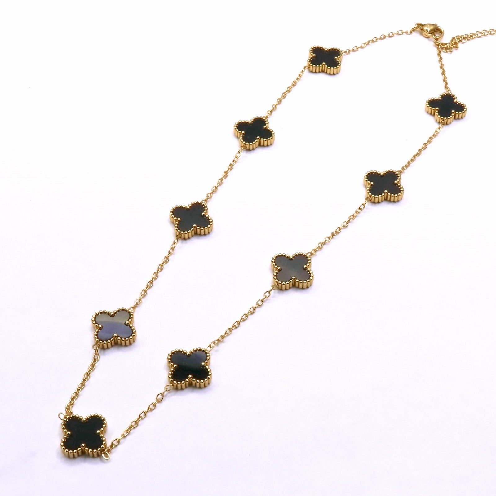 The Enchanted Clover Necklace brings a touch of whimsy and charm, featuring clovers delicately set in gleaming gold. This timeless piece symbolizes good fortune and adds a playful yet elegant vibe to any outfit, making it a perfect addition to any jewelry collection.